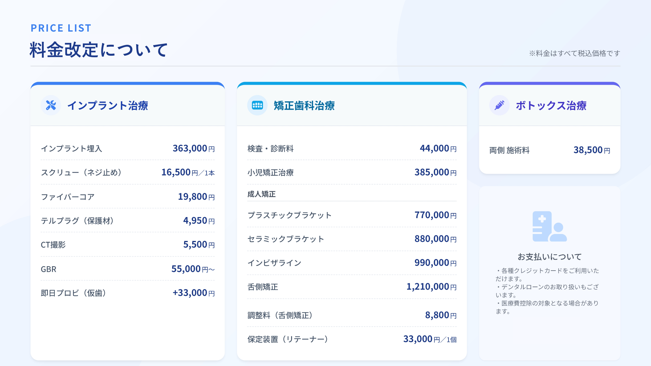 2026年1月より自由診療の一部価格を改定させていただくこととなりました。