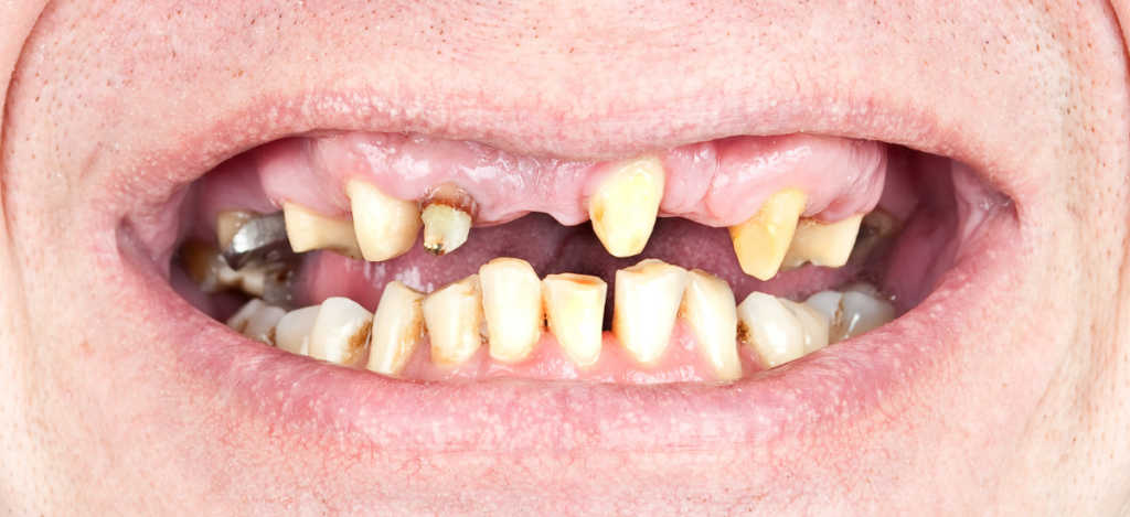 歯がボロボロになる原因で最も多いのが、進行した虫歯と歯周病です。