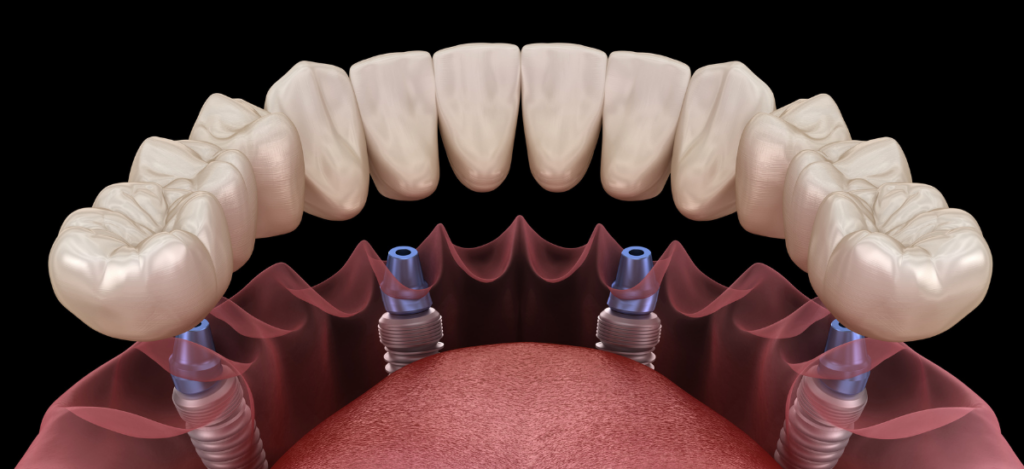 All-on-4は「抜歯が必要な歯が多い方でも、最小4本のインプラントで歯全体を支える」治療です。